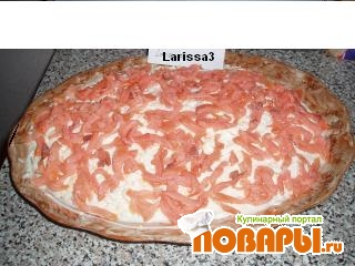 А теперь можно положить слой красной икры или красной копчёной рыбки, или копчёную форельку.