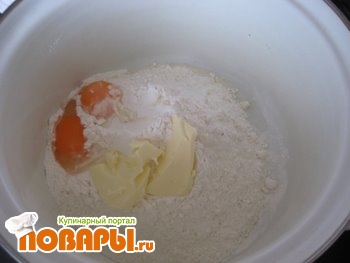 Для рецепта использовала все то, что обычно использую для приготовления мантов. Чтобы замесить тесто, насыпаю муку горкой, добавляю щепотку соли, яиц и масло.