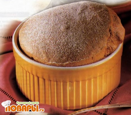 Смажьте сливочным маслом и посыпьте мукой форму для суфле, наполните тестом и поставьте в нагретую духовку на 30 - 35 минут (в течение этого времени ни в коем случае не открывайте ее).