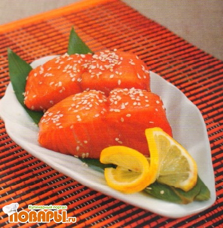 Филе лосося промыть, обсушить, сложить в миску и залить соусом. Оставить рыбу мариноваться при комнатной температуре в течение 1-1,5 часов.