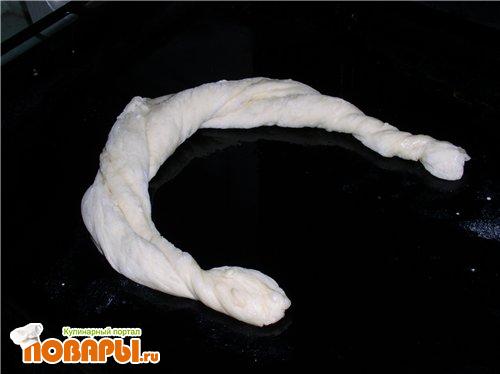 Тесто для лукошка я замешивала в хлебопечи: заложить все ингридиенты и включить режим теста. Когда тесто готово быложить его в форму в виде лукошка, и отдельно сделать ручку,