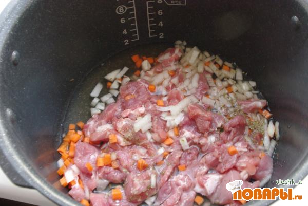 Все, как и во всех моих рецептах, элементарно. Нарезанный лук, морковь, мясо, добавила немного воды и отправила в мультю и включила режим "мультиповар" на 30 минут.
