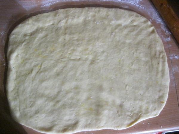 Свернуть не тугой рулет, закручивая с двух сторон. Перенести на противень и дать постоять еще 15 – 20 мин.