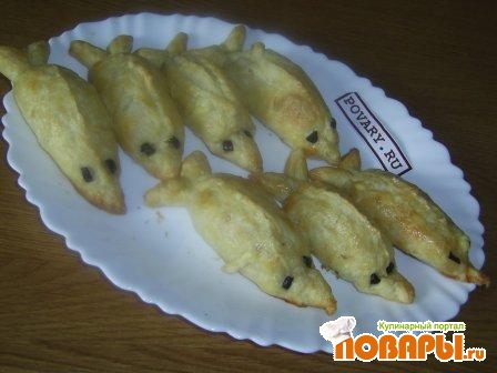 Сырое взбить, обмазать рыбок. Выложить рыбок на противень и в духовку на 20-30 мин., пока они не станут золотисто-коричневые.