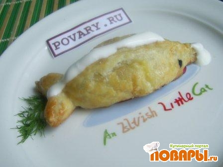 Повторить п.3 и п.4 со вторым пластом теста и оставшейся рыбой.