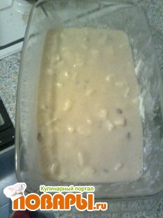 Вылить в форму, запечь в духовке при 1750 до румяной корочки.