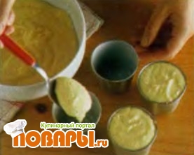 Распределите смесь по порционным формочкам. Установите формочки в низкую кастрюлю на водяную баню и поставьте в нагретую духовку на 20 минут.