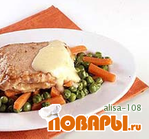 Медальоны из телятины полить фондю, подавать с жареными овощами.