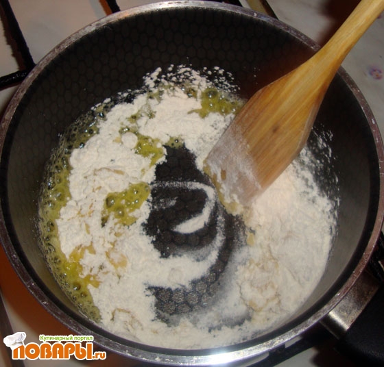 Добавляем 2 ст.л. муки ( я положила с горкой, так как соус нужен густой):