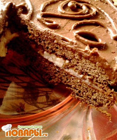 Этот торт выпекается одним коржом, который разрезается на 2 части.