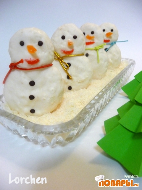 Покрыть "снеговиков" белым шоколадом, растопленном на водяной бане.