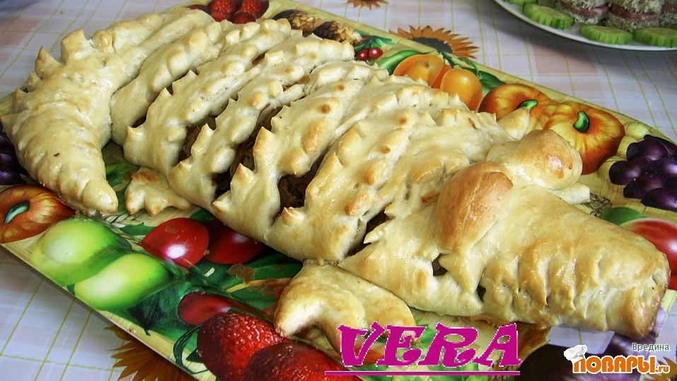 Выпекаем в духовке при 200 градусах до зарумянивания. За 10 минут до готовности смазываем взбитым яйцом.