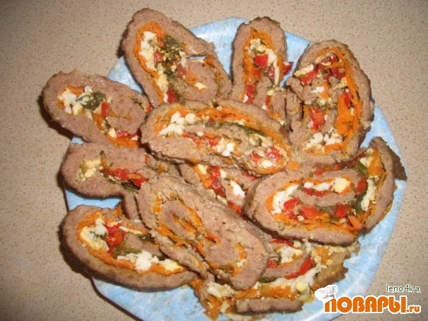 Мясной рулет с овощами и яйцом