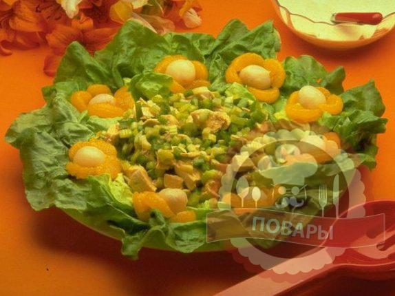 Выдержанные в холодной солёной воде листья одуванчика нарезать соломкой. Добавить нарезанное кусочками отварное или жареное мясо, рубленое варёное яйцо, тёртую морковь, зелёный горошек и соль. Салат заправить сметаной и посыпать зеленью укропа или петрушки.