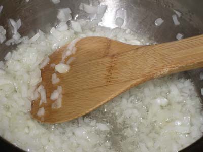 В толстостенной кастрюле разогреть рафинированное подсолнечное масло, обжарить лук и чеснок минуты три.