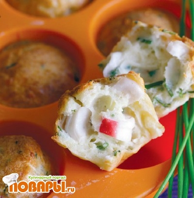Мини-кексы с крабами и луком сибулет
