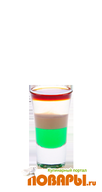 Используя коктейльную ложку: уложи слой бейлиса 15 мл, слой куантро 15 мл и заверши слоем егермейстера 10 мл