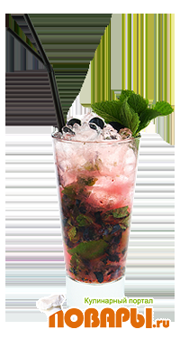Положи в хайбол 10 листьев мяты, 3 дольки лайма и добавь голубику 10 ягодок