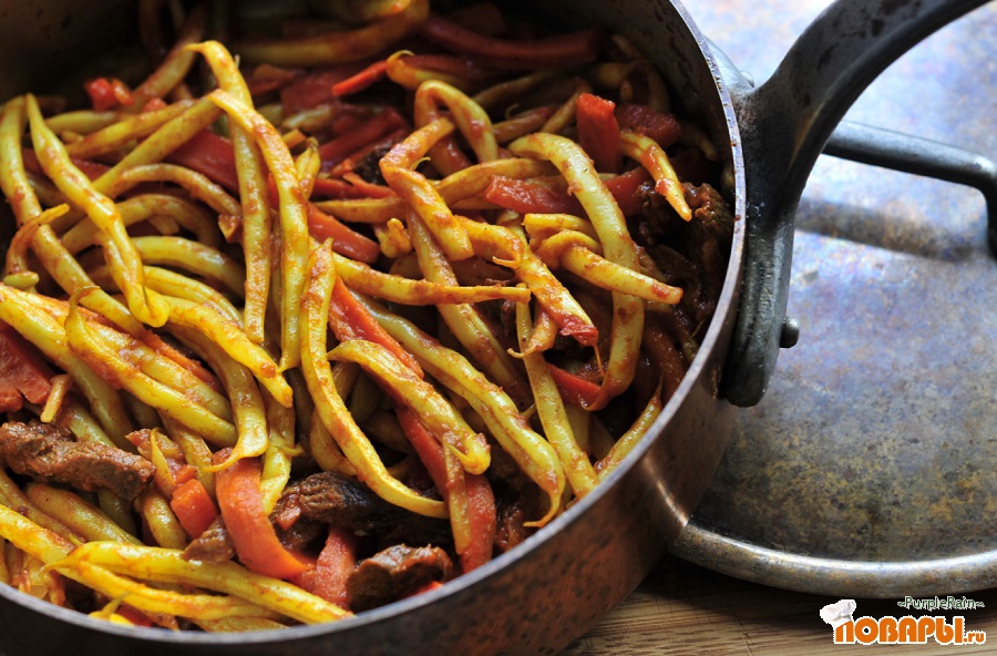 Молодая фасоль с говядиной