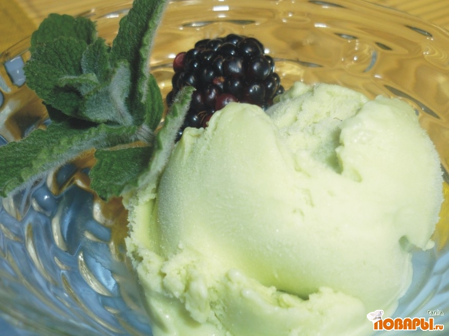 Когда масса слегка подмерзнет, снова поместить в блендер и взбить в густой крем. Вылить массу в ту же тару, накрыть пластиком и окончательно заморозить.