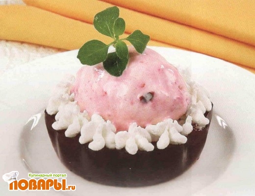 Перед подачей формочки на несколько секунд опустите в горячую воду и выложите желе на блюдо. На желе уложите по шарику мороженого, оформите взбитыми сливками.