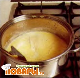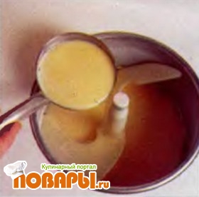 Влейте тонкой струйкой молоко и сливки в яичную смесь, перемешивая венчиком. Переложите смесь в кастрюльку, поставьте на огонь и, помешивая, доведите до начального этапа кипения.