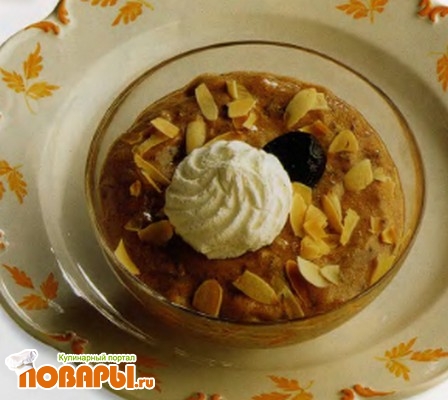 Крупно нарежьте очищенный миндаль, положите на сковороду и слегка подрумяньте. Остудите на тарелке, покрытой бумажной салфеткой. Украсьте каждую вазочку миндальной стружкой, половинкой сливы и безе. Подавайте с белым полусладким вином.