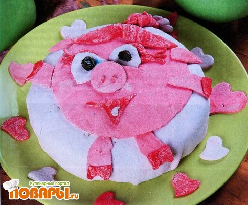 Наносим его и сверху т к. мастика подчеркивает все неровности. Сначала покрываем торт белой или розовой мастикой, потом раскатываем цветные части и вырезаем ножницами или ножом волосы, глазки, рот, щечки. Приклеиваем части с помощью капельки воды.