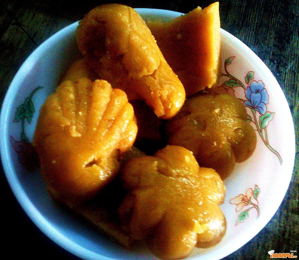 Но если нужно, что бы халва была в виде ромбиков и квадратиков, то нужно продолжить процесс уваривания. Масса должна будет отстать и ото дна сковороды и выглядеть как тесто для пельмешек, но чуть помягче.