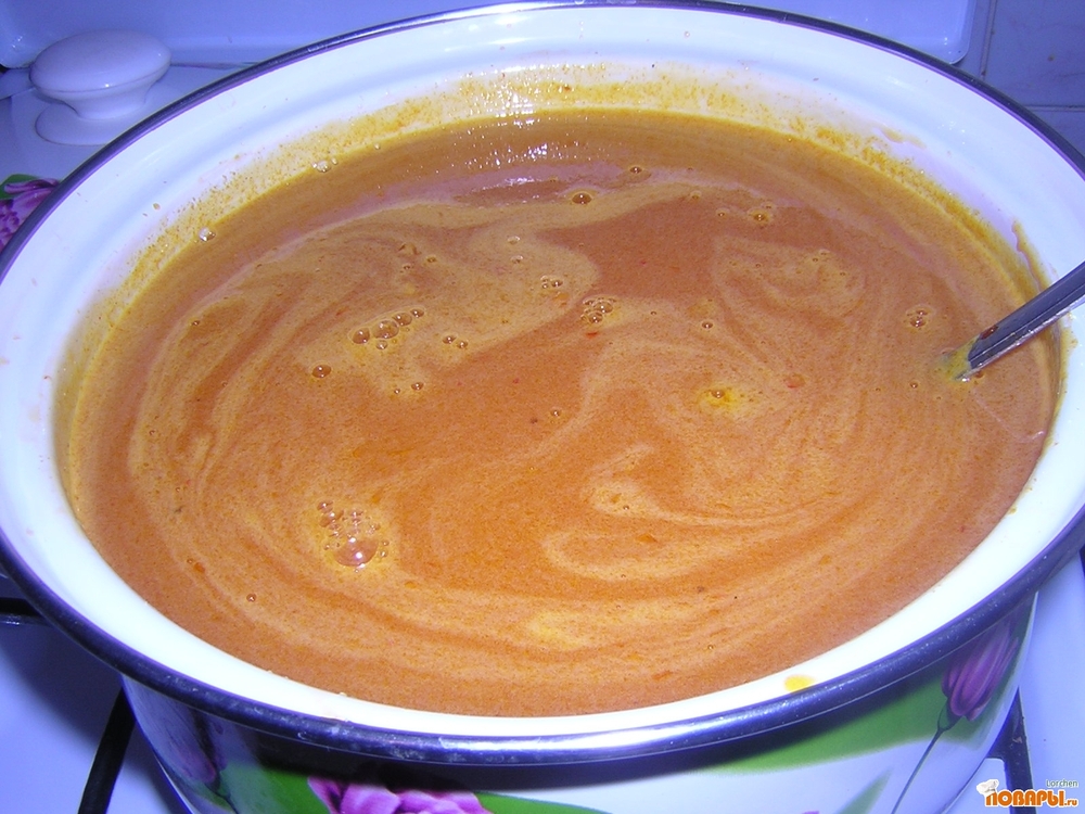 Постоянно помешивая, доводим сироп до кипения, снимаем пену, кипятим 1 минуту, заливаем в стерелизованные банки и закручиваем крышками.