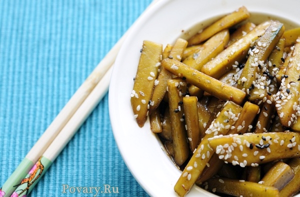 ОтветитьОй, как интересно!!! А кунжут у вас поджаренный?! Вроде как нет... А как вкуснее? Я хочу с бальзамиком сделать. Что-то подобное делаю со стручковой фасолью. Готовлю ее на пару, поливаю оливковым маслом (не нагреваю), бальзамиком, посыпаю кунжутом поджаренным. Тоже вкусно))) Хотя, это уже совершенно другое блюдо))) Хотя, на вид они похожи!!!