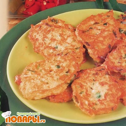 Столовой ложкой выложить оладьи на сковороду и обжарить с двух сторон на слабом огне до образования золотистой корочки.