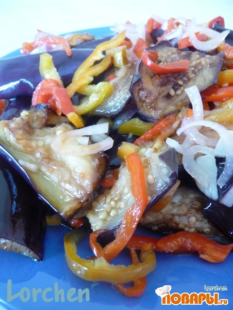 Баклажаны крупно нарезать, пожарить слегка в растительном масле.