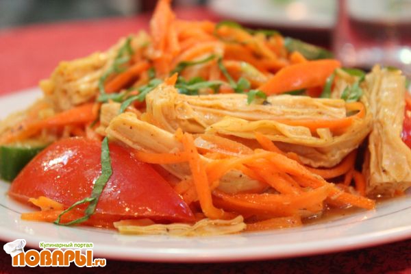 Острая фучжи с морковью и свежими овощами