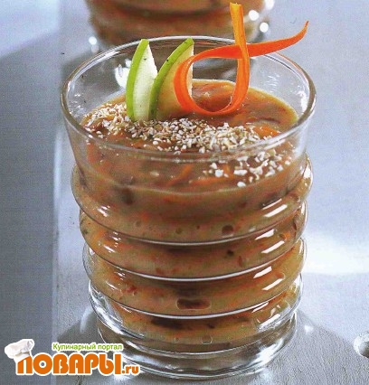 Добавьте в суп подготовленные чернослив, яблоко и морковь, ореховое масло, соль и перец. Перемешайте, доведите до кипения и сразу же снимите с огня.