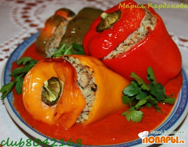 перцы подавать с соусом и свежей зеленью петрушки/майорана