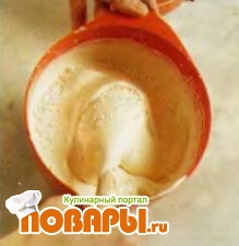 Перемешивайте непрерывными отмеренными движениями снизу вверх, пока мука полностью не растворится в креме.