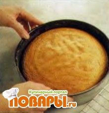 Выньте пандишпан из духовки, раскройте форму, ели он отошел от бортов формы, значит он готов.