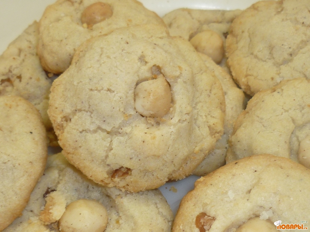 Брать ложкой небольшие порции теста, руками выделать шарики, в центр вдавить по орешку. Выложить на протвень желательно на пекарскую бумагу на некотором расстоянии друг от дружки - печеньки прилично растекаются.