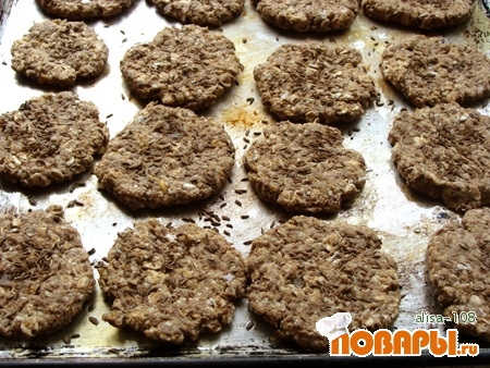 Масса становится густая и вязкая. Из этой массы формируем небольшие печенья круглой формы и выкладываем на противень, смазанный растительным маслом.