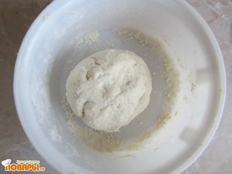 Мешаем до тех пор, пока тесто не станет густой консистенции и его можно будет скатать в шарик.