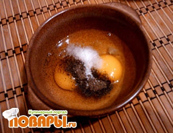 Разбиваем яйца, добавляем соль и перец. Немного взбиваем.