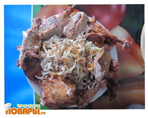 Для этого рецепта обязательно нужна пекинская утка! Квашенную капусту лучше взять очень кислую. В этом рецепте квашенная капуста возьмет на себя неприятный запах жира утки и мясо будет сочным и нежным! ;)