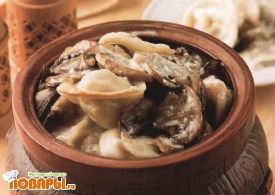 Пельмени с грибами в горшочках