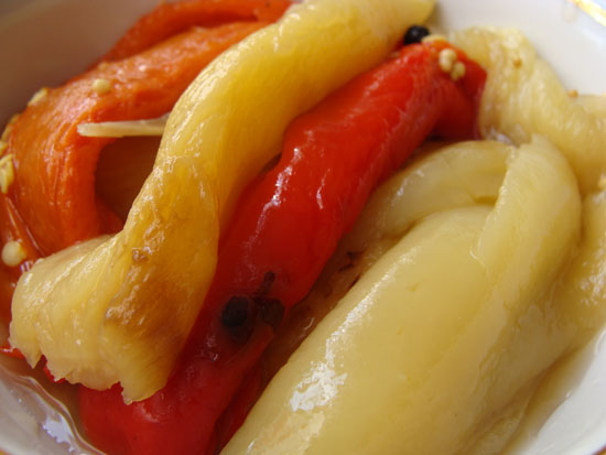 Перец запекаем в духовке до образования на нем подгорелой кожицы. При запекании равномерно поворачиваем его со всех сторон. Складываем на 30 минут в целлофановый мешочек и даем ему остыть.