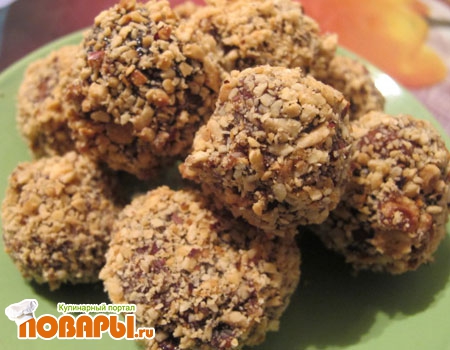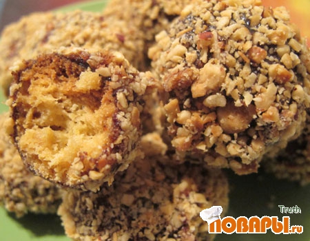 Охлажденные печеньки обмакнуть в глазурь и в рубленные орехи (кокосовую стружку, рубленные вафли, порошок какао). Оставить на 15 минут в холод.