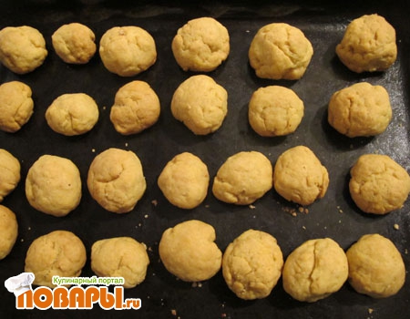Растопить маргарин, добавить соду, лимонную кислоту, орехи, желтки, муку. Тесто должно получится эластичным, как на вареники. Раскатать маленькие шарики, положить на противень, испечь до румяной корочки при средней температуре.