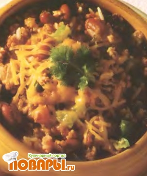 Пикадилло в Испании называют рубленое мясо или смесь мяса с овощами. Пряности и каперсы превращают это незамысловатое блюдо из индейки в острое мексиканское кушанье. В данном рецепте можно использовать любое мясо - говядину, свинину или курятину - и любое сочетание овощей. Сочный изюм и пикантные каперсы придают неожиданный вкус этому блюду из индейки с рисом и фасолью.