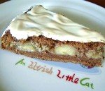 Достаем, даем немного остыть. В это время взбиваем белок с сахарной пудрой до устойчивых пиков. Полученной смесью покрываем пирог и ставим в духовку. Как вверх подрумянится – пирог готов.