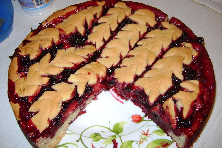 Сверху украсить сеточкой из теста или косичками. Поставить в духовку на 180-200 градусов примерно на 40-45 минут
